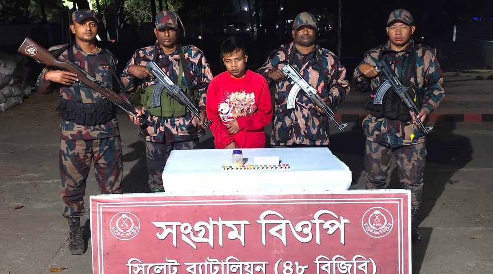 এসময় তার কাছ থেকে ২৫ গ্রাম অ্যাডানক পাউডার উদ্ধার করা হয়েছে। আটক ব্যক্তি ও উদ্ধারকৃত মেডিসিন গোয়াইনঘাট থানায় হস্তান্তর করা হয়েছে। সিলেট ব্যাটালিয়ন (৪৮ বিজিবি)-এর অধিনায়ক লেফটেন্যান্ট কর্নেল মো. হাফিজুর রহমান এক বিজ্ঞপ্তিতে বিষয়টি নিশ্চিত করেন।