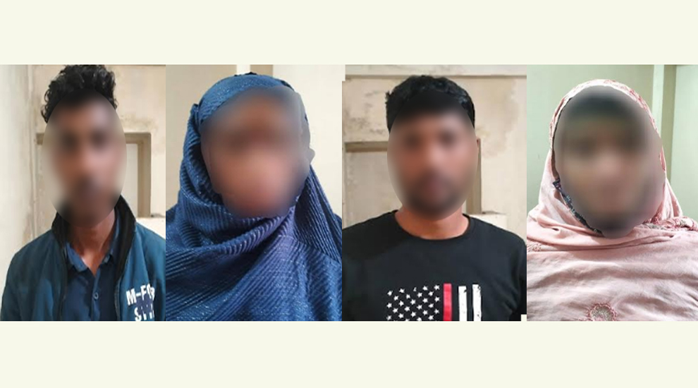 গ্রেফতারকৃতরা হলেন- মোঃ ফয়ছল আহমদ (২২), ওয়াহিদুল হাসান (৩২), মোছাঃ শাপলা বেগম (২৩) ও মোছাঃ শাহীনা আক্তার সীমা (৩৩)।