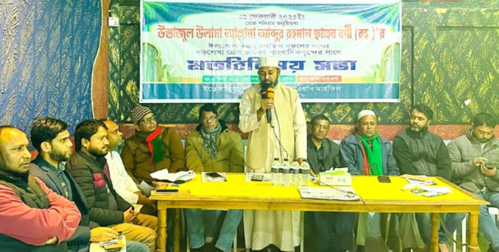 বড়লেখা প্রেসক্লাবের সভাপতি আনোয়ারুল ইসলামের সভাপতিত্বে ও সাংবাদিক মস্তফা উদ্দিনের সঞ্চালনায় অনুষ্ঠিত সভায় আল্লামা আব্দুর রহমান ছাহেব বর্ণী (রহ.) এর দ্বীনী খেদমত তুলে ধরে বক্তব্য রাখেন ছাহেব জাদায়ে বর্ণী মাওলানা মো. আব্দুল আলিম। স্বাগত বক্তব্য দেন মো. মাহফুজুর রহমান। সভার শুরুতে পবিত্র কোরআন থেকে তেলাওয়াত করেন রহমানিয়া টুকা হাফিজিয়া দাখিল মাদ্রাসার ছাত্র মো. আল আমিন।