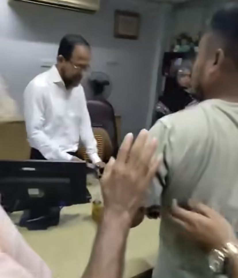 রবিবার দুপুরে ন্যাশনাল ব্যাংকের বিয়ানীবাজার শাখায় ব্যবস্থাপককে গালিগালাজ করছেন একজন গ্রাহক, এমন ভিডিও ভাইরাল হয়েছে। এসময় টাকা না পেয়ে উত্তেজিত গ্রাহকরা কর্মকর্তাদের গালিগালাজ করেন।