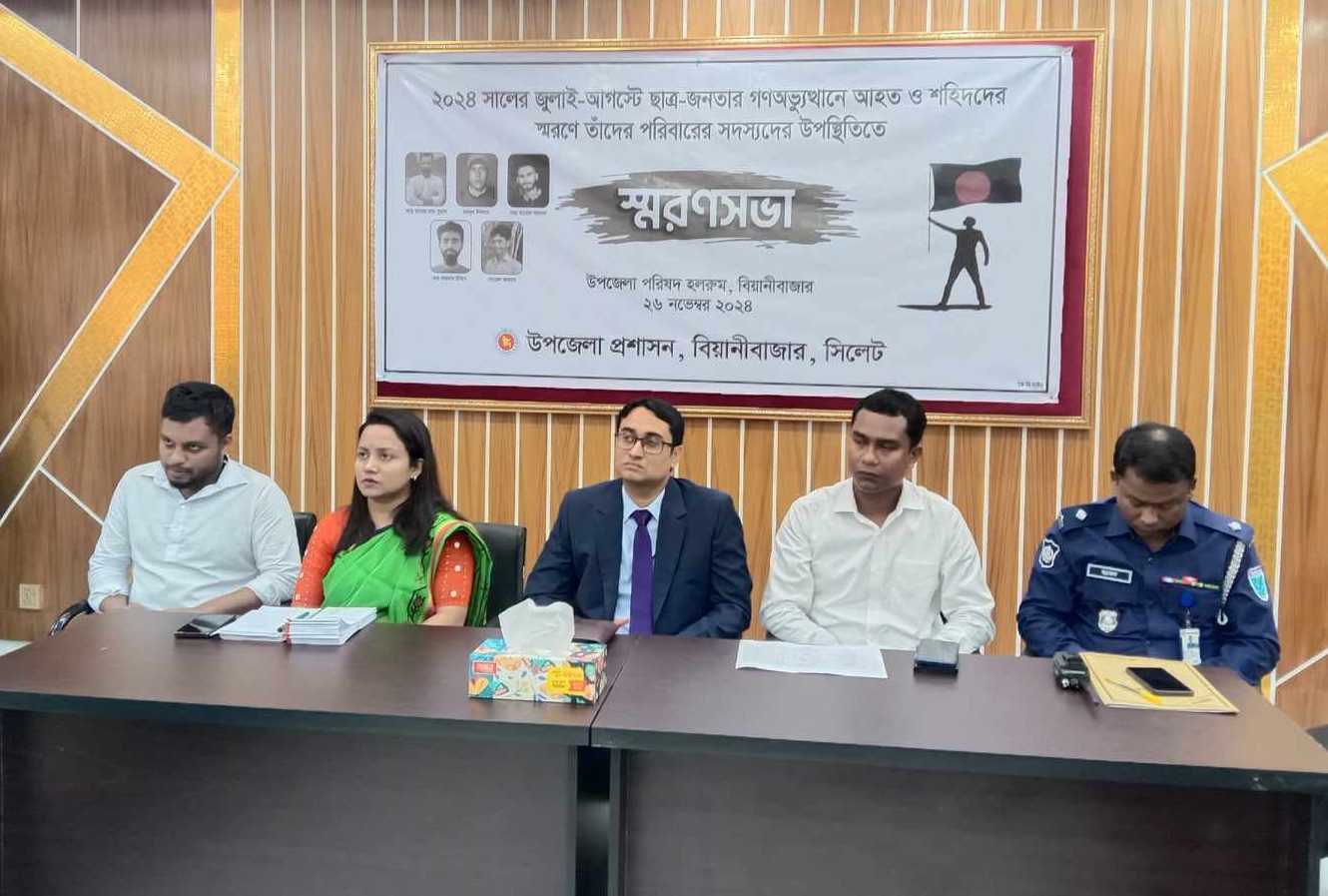 সভায় আহত ও নিহতদের স্বজনরা স্মৃতিচারণমুলক নানা বক্তব্য তুলে ধরেন। আন্দোলনে অংশ নেয়া অনেক ছাত্রও নিজের দু:সহ দিনগুলোর তথ্য উপস্থাপন করেন। বিয়ানীবাজার উপজেলা প্রশাসন আয়োজিত অনুষ্ঠানে সভাপতিত্ব করেন উপজেলা নির্বাহী অফিসার (ইউএনও) গোলাম মস্তুফা মুন্না। এতে বিশেষ অতিথির বক্তব্য রাখেন উপজেলা সহকারি কমিশনার (ভূমি) কাজি শারমিন নেওয়াজ, পুলিশ পরিদর্শক (তদন্ত) সমেদ আলী, বৈষম্য বিরোধী আন্দোলন সিলেট জেলার সহ-সমন্বয়ক শাহরিয়ার ইমন সানি।