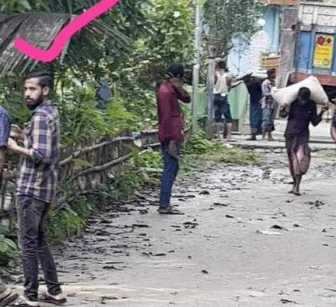 ছিনতাইয়ের পর ট্রাক থেকে চিনি ভাগবাটোয়ারা করছেন চেক শার্ট পরিহিত জাহিদুল হত তাহমিদ-ফাইল ছবি/