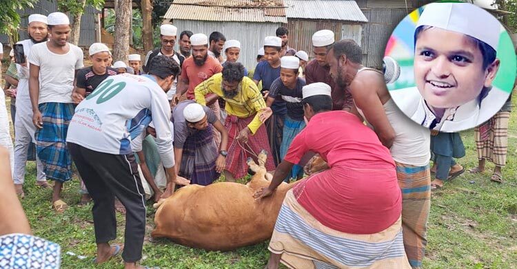 রোববার (১১ মে) বিকেল ৩টার দিকে নিজ এলাকা নেত্রকোনার পূর্বধলার লেটিরকান্দা গ্রামে মারকাযু সাহাবুদ্দিন আল ইসলামী মাদরাসার সামনে গরু জবাই করা হয়।