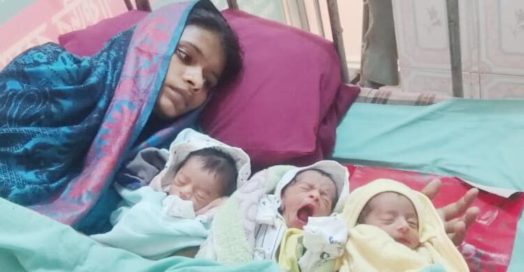 গৃহবধূর স্বামী মো. খবির হোসেন জানান, আল্লাহ একসঙ্গে তিনটি বাচ্চার বাবা বানিয়েছেন। এতে আমি অনেক খুশি। কৃষিকাজের ওপর চলে আমার সংসার। সরকারিভাবে কোনো সহযোগিতা পেলে পরিবারের ওপর চাপ কমবে।