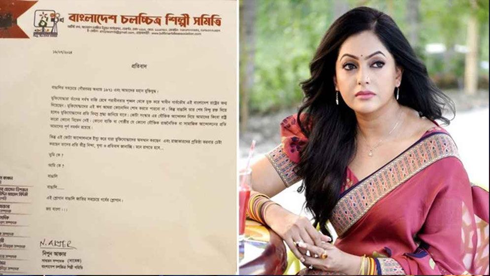 বাংলাদেশ চলচ্চিত্র শিল্পী সমিতি থেকে আজীবনের জন্য বহিষ্কার করা হয়েছে অভিনেত্রী নিপুণ আক্তারকে। জালিয়াতির অভিযোগে অভিনেত্রীকে বহিষ্কার করা হয়েছে। জানা গেছে, অনৈতিকভাবে সমিতির প্যাড ব্যবহার করে মনগড়া বিবৃতি প্রদান করার অভিযোগে সম্প্রতি কার্যনির্বাহী পরিষদের মিটিংয়ে সর্বসম্মতিক্রমে এ সিদ্ধান্ত গৃহীত হয়েছে।