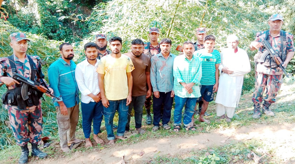 বিজিবি সূত্রে জানা যায়- বিয়ানীবাজার ব্যাটালিয়ন (৫২ বিজিবি) এর অধীনস্থ লাঠিটিলা বিওপির নায়েব সুবেদার মোঃ আসাদুজ্জামান এর নেতৃত্বে একটি টহলদল সীমান্ত এলাকায় নিয়মিত টহল পরিচালনাকালে সীমান্ত পিলার ১৮০৫/এম এর নিকট দিয়ে ভারত হতে বাংলাদেশে অবৈধভাবে অনুপ্রবেশের সময় শূন্য রেখা হতে আনুমানিক ১৫০ গজ বাংলাদেশ অভ্যন্তরে কচুরগুল নামক স্থান হতে দুই জনকে আটক করে। জিজ্ঞাসাবাদে তাদের দেয়া তথ্যমতে স্থানীয় জনসাধারণের সহযোগিতায় কচুরগুল এলাকায় অবস্থিত চা বাগানে দীর্ঘ সময় তল্লাশী চালিয়ে আরও ৬ জন অবৈধ অনুপ্রবেশকারীকে আটক করা হয়।
