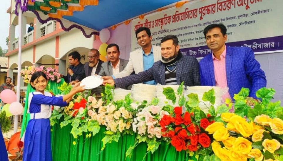 মৌলভীবাজারের কুলাউড়া বালিকা উচ্চবিদ্যালয়ের বার্ষিক ক্রীড়া ও সাংস্কৃতিক প্রতিযোগিতার পুরস্কার বিতরণ অনুষ্ঠিত হয়েছে। বুধবার (২৯ জানুয়ারি) বিদ্যালয় মাঠে বিজয়ী শিক্ষার্থীদের মধ্যে পুরস্কার বিতরণ করা হয়।