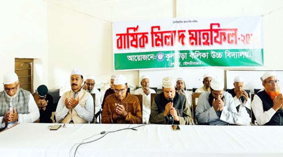 মৌলভীবাজারের কুলাউড়া বালিকা উচ্চবিদ্যালয়ের বার্ষিক মিলাদ অনুষ্ঠিত হয়েছে। বুধবার (১৯ ফেব্রুয়ারি) দুপুরে বিদ্যালয়ের হলরুমে আসন্ন এসএসসি পরীক্ষার্থীদের জন্য এ মিলাদ ও দোয়া অনুষ্ঠিত হয়।