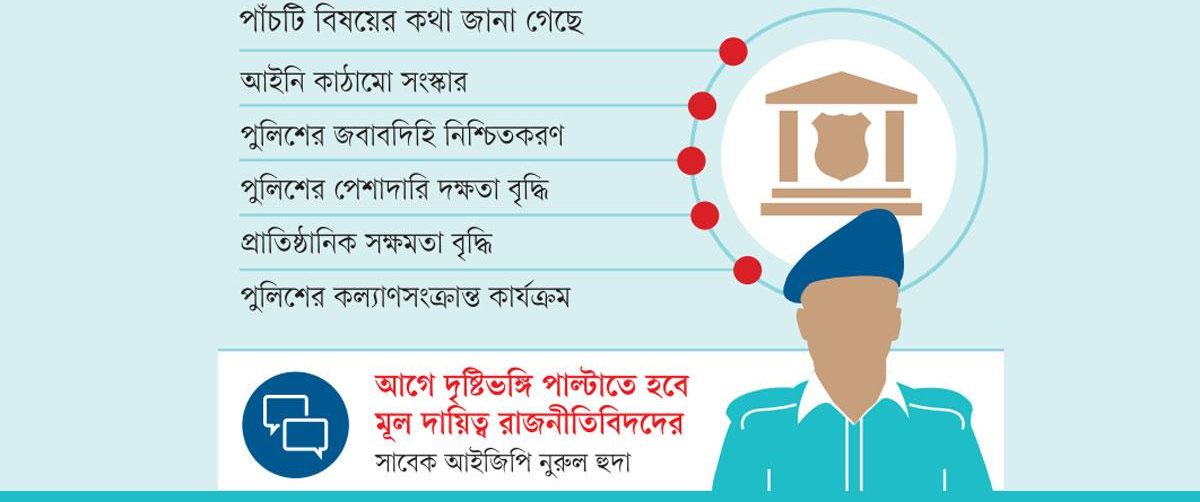 এ প্রসঙ্গে সাবেক পুলিশ মহাপরিদর্শক (আইজিপি) মুহাম্মদ নুরুল হুদা বলেন, ‘আইন করে কিছু কাজ হয়তো করা যাবে, কিন্তু পরিপূর্ণ পেশাদার পুলিশ বাহিনী প্রতিষ্ঠা করা সম্ভব না। এটা মূলত দৃষ্টিভঙ্গির ব্যাপার। যারা ক্ষমতায় থাকে (সরকার) তাদের বিবেচনা করে পুলিশকে পরিচালনা করতে হবে। কেননা সরকার বা ক্ষমতাসীন রাজনৈতিক দলের নেতারা পুলিশকে অনেক সময় অন্যায় বা অপেশাদার কাজে নিযুক্ত করে থাকে। এ ক্ষেত্রে যারা অন্যায় আদেশ মান্য করবে না তাদের জন্য চাকরি সুরক্ষার ব্যবস্থা থাকতে হবে। আবার একশ্রেণির পুলিশ সদস্য লোভের কারণে বা ক্ষমতার দাপট দেখাতে গিয়ে অপকর্ম করে থাকে। সেখানেও কঠোর জবাবদিহি থাকতে হবে। তবে সার্বিক প্রেক্ষাপটে পেশাদার ও স্বাধীন পুলিশ বাহিনী হিসেবে প্রতিষ্ঠার ক্ষেত্রে মূল দায়িত্বটা রাজনীতিবিদদের।’