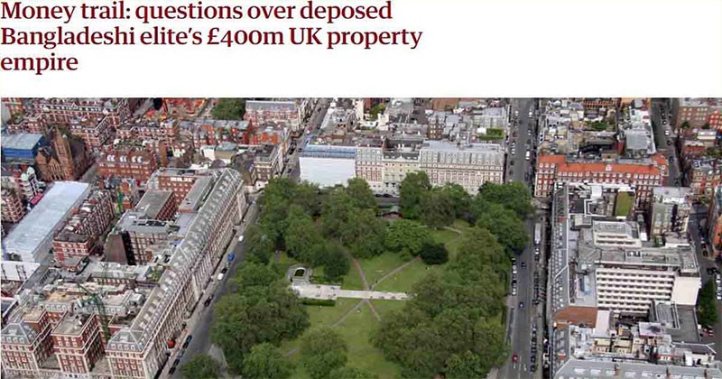 যুক্তরাজ্যের সংবাদমাধ্যম দ্য গার্ডিয়ান শনিবার (৩০ নভেম্বর) এক অনুসন্ধানী প্রতিবেদনে এ তথ্য প্রকাশ করেছে। ব্রিটিশ সংবাদমাধ্যম অবজারভার ও বার্লিনভিত্তিক দুর্নীতিবিরোধী প্রতিষ্ঠান ট্রান্সপারেন্সি ইন্টারন্যাশনালের যৌথ অনুসন্ধানে জানা যায়, এসব ব্যক্তিদের নামে দেশটির বিভিন্ন স্থানে প্রায় ৩৫০টি সম্পত্তি রয়েছে। ফ্ল্যাট থেকে শুরু করে সুবিশাল অট্টালিকা রয়েছে। যুক্তরাজ্য ও দেশটির বাইরের বিভিন্ন প্রতিষ্ঠানের (অফশোর কোম্পানি) নামে এই সম্পত্তির অনেকগুলো কেনা হয়েছে।