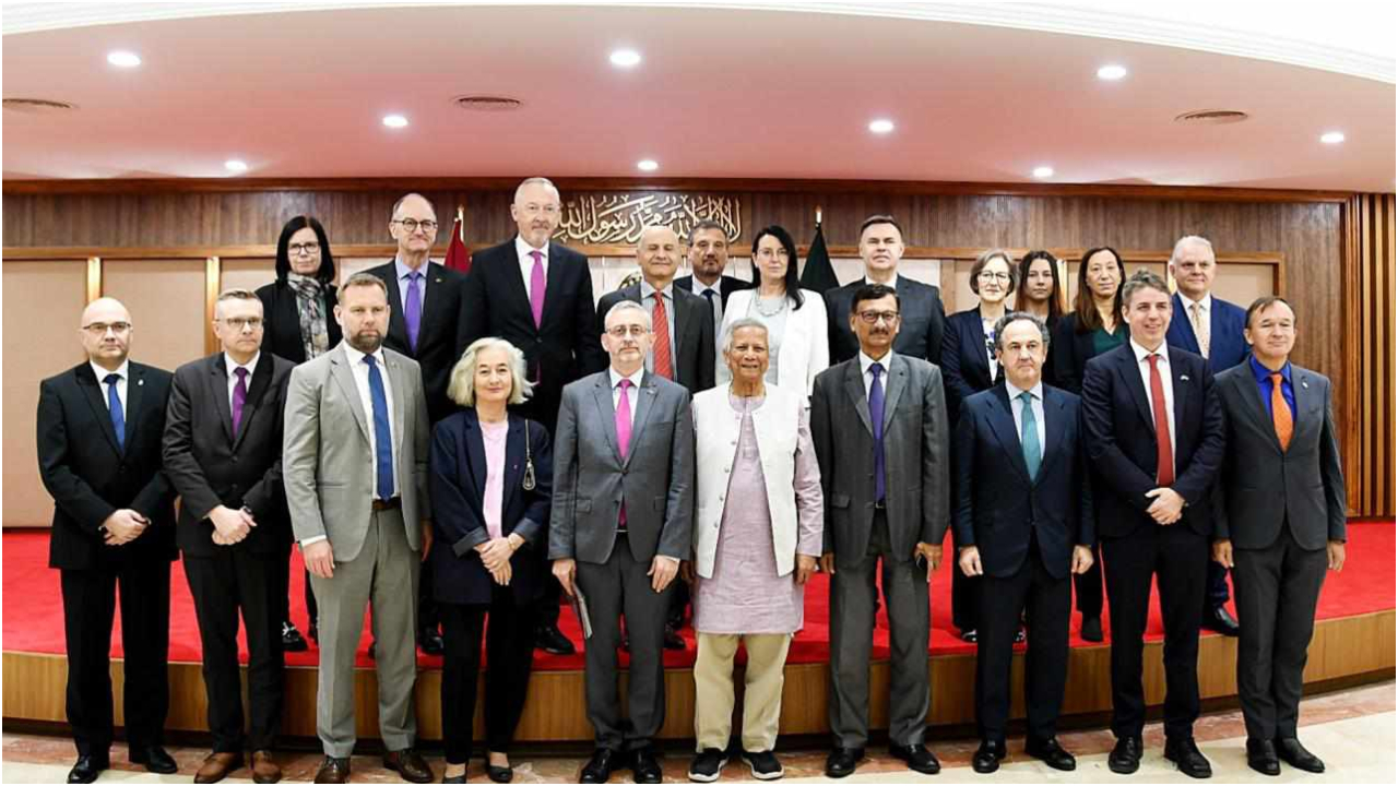 ইইউর ২১ রাষ্ট্রদূতের দলটির নেতৃত্বে ছিলেন বাংলাদেশে নিযুক্ত ইউরোপীয় ইউনিয়নের হেড অব ডেলিগেশন মাইকেল মিলার। প্রধান উপদেষ্টার সঙ্গে বৈঠকে অংশ নেন পররাষ্ট্র উপদেষ্টা তৌহিদ হোসেন।