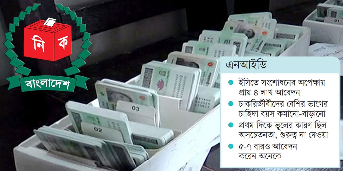জাতীয় পরিচয়পত্র (এনআইডি) হলো একজন ব্যক্তির নাগরিকত্বের প্রমাণ। বাংলাদেশে ২০০৮ সালে এনআইডি তৈরির কার্যক্রম শুরু করে নির্বাচন কমিশন (ইসি)। অথচ দীর্ঘ ১৭ বছরেও এনআইডির গুরুত্ব অনুধাবন করতে পারেননি এ দেশের অনেক নাগরিক। আর সে কারণেই এনআইডি সংশোধনকারীদের মধ্যে প্রায় ৬০ শতাংশের ভুলের কারণ গ্রাহক নিজেই। ব্যক্তিগত বা পারিবারিক প্রয়োজন মেটাতে বেপরোয়া কেউ কেউ। আইন লঙ্ঘন করে যেকোনো উপায়ে এনআইডি পাওয়াই তাদের লক্ষ্য। গত বছরের ১৭ ডিসেম্বর পর্যন্ত অনিষ্পন্ন এনআইডি সংশোধন আবেদনের সংখ্যা ৩ লাখ ৭৮ হাজারের বেশি।