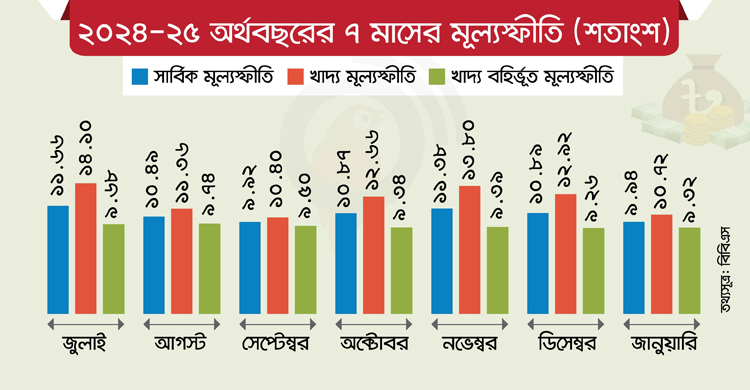 বিবিএসের তথ্যমতে, ২০২৪ সালের জুলাই মাসে সার্বিক মূল্যস্ফীতির হার ছিল ১১ দশমিক ৬৬ শতাংশ। খাদ্য খাতে ১৪ দশমিক ১০ ও খাদ্যবহির্ভূত খাতে মূল্যস্ফীতি ছিল ৯ দশমিক ৬৮ শতাংশ। তখন ক্ষমতায় ছিল আওয়ামী লীগ। ৫ আগস্ট শেখ হাসিনা সরকারের পতনের পর ৮ আগস্ট শপথ নিয়েছিল অধ্যাপক ড. মুহাম্মদ ইউনূসের নেতৃত্বে অন্তর্বর্তী সরকার।