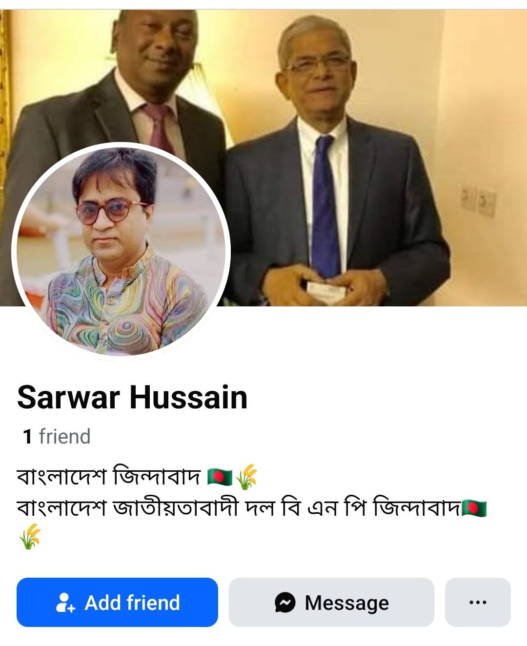 বিয়ানীবাজার উপজেলা বিএনপির সাধারণ সম্পাদক মো. ছরওয়ার হোসেনের নামে ভূয়া ফেসবুক আইডি তৈরী করেছে একটি দুষ্টুচক্র। ওই ভূয়া আইডিতে ছরওয়ার হোসেনের মূল আইডির সাথে হুবহু মিল রেখে ছবি ও নাম ব্যবহার করা হয়েছে।