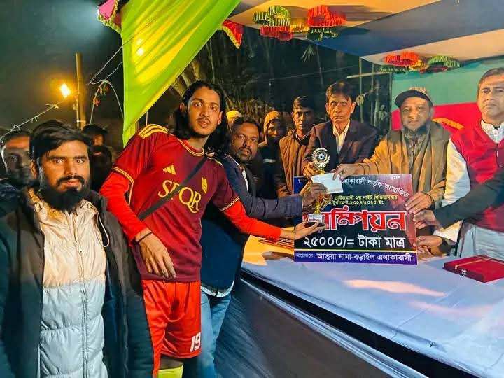 ব্যাংকার আহমদ শরীফ জাহাঙ্গীরের পরিচালনায় খেলা শেষে পুরষ্কার বিতরণ অনুষ্টানে প্রধান অতিথির বক্তব্যে রাখেন বাংলাদেশ জামায়াতে ইসলামী সমর্থিত সংসদ সদস্য পদপ্রার্থী মাওলানা আমিনুল ইসলাম।