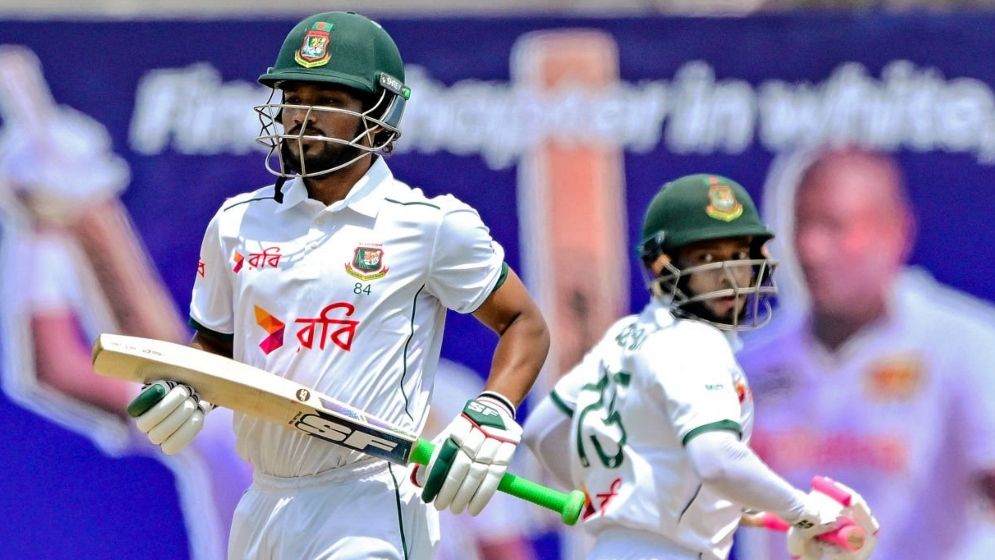 প্রথম সেশনে বাংলাদেশ খানিকটা ব্যাকফুটেই চলে গিয়েছিল। আর একটা উইকেট বাংলাদেশকে ঠেলে দিতে পারত খাদের কিনারে। ঠিক সে সময় সফরকারীদের ত্রাতা হয়ে এলেন অধিনায়ক নাজমুল হোসেন শান্ত ও অভিজ্ঞ ব্যাটার মুশফিকুর রহিম। দুজন মিলে চতুর্থ উইকেট জুটিতে যোগ করেছেন সেঞ্চুরি, ব্যক্তিগত ফিফটির দেখাও পেয়ে গেছেন তারা। তাতে বাংলাদেশ খানিকটা স্বস্তির নিঃশ্বাস ফেলছে এখন।