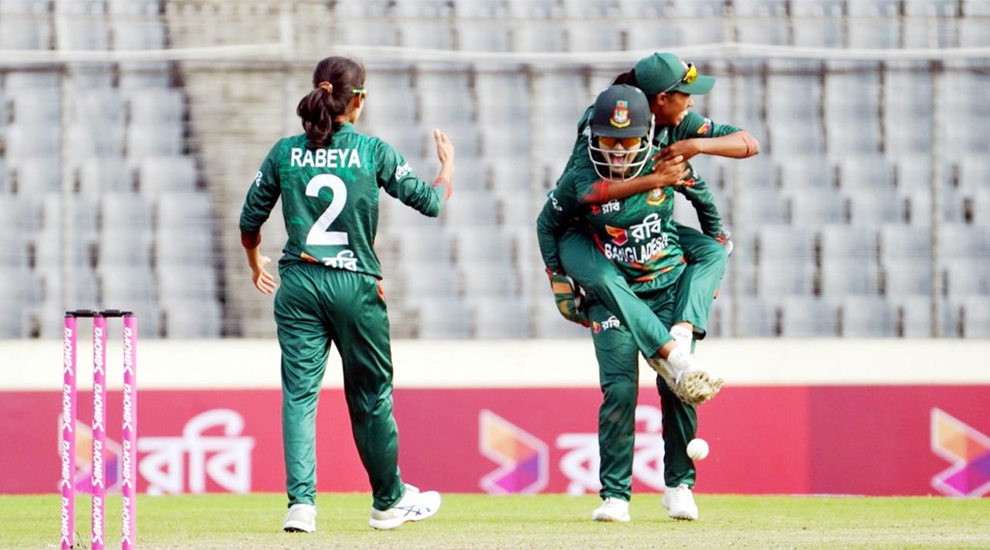 এর আগে টসে জিতে ব্যাট করতে নেমে শুরু থেকেই দুর্দান্ত খেলেছে বাংলাদেশ। দুই ওপেনার ফারজানা হক ও মুর্শিদা খাতুন মিলে উদ্বোধনী জুটিতেই তোলেন ৫৯ রান। ৩৮ রান করে মুর্শিদা আউট হলেও ফারজানা পেয়েছেন ফিফটির দেখা। টাইগার এই ওপেনার শেষ পর্যন্ত আউট হয়েছেন ৬৮ রান করে।