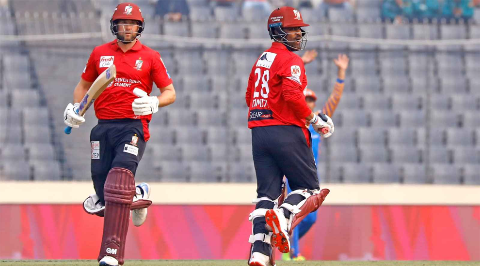 এর আগে ব্যাট করতে নেমে ঝড় তুলেছিলেন খুলনার দুই ওপেনার মেহেদী মিরাজ ও নাইম শেখ। ১৮ বলে ২৯ রান করে মিরাজ আউট হলেও ঝড়ো ফিফটি করেন নাইম। ২৭ বলে ৫১ রান করে আউট হন তিনি।