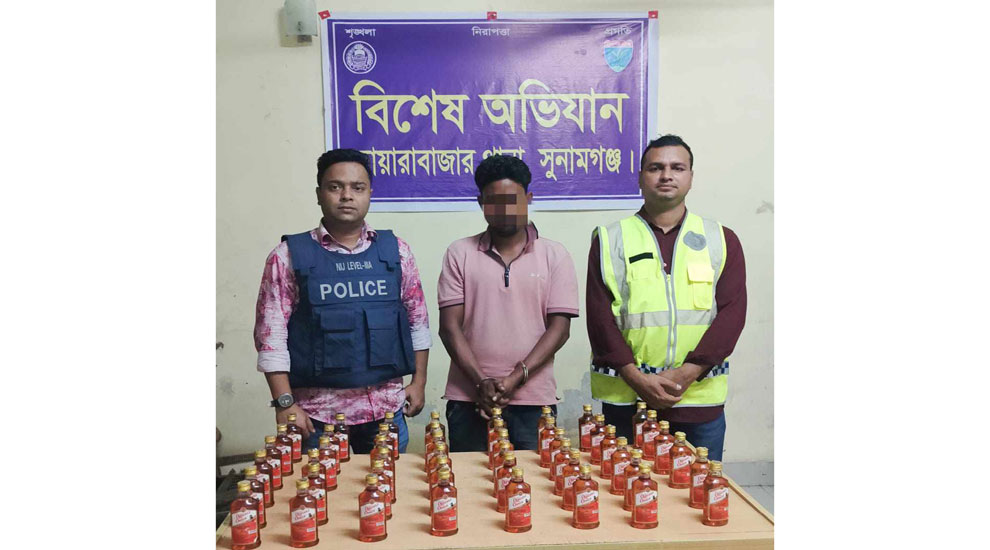 দোয়ারাবাজারে ৪৮ বোতল ভারতীয় মদসহ যুবক আটক